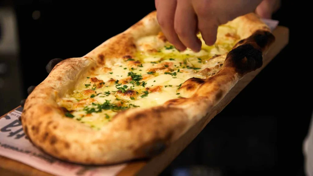 Kruh od pizze sa sirom s Taleggiom, svježi peršin i ekstra djevičansko maslinovo ulje